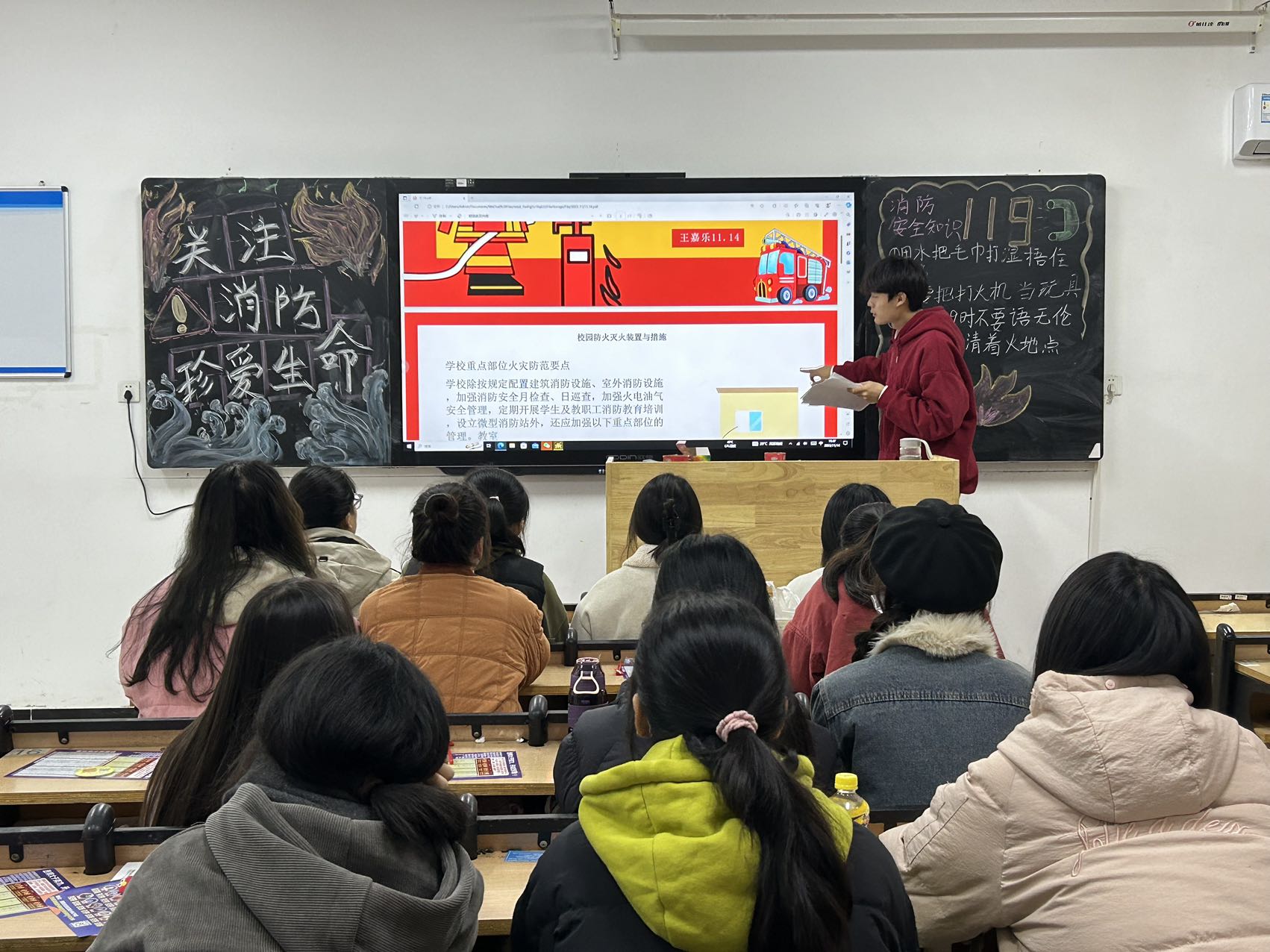在班会上,首先,各班班长宣传了习近平总书记关于安全生产和消防工作的重要论述及有关法律法规。接着班长对同学进行了相关消防知识的强化科普、警示教育,结合相关消防案例,警示同学们日常生活不要放松警惕,提高防患意识,同学们表示,通过班会的学习,深刻认识到了消防安全的重要性和必要性,也加强了自己的消防安全意识,增添了见识和实际的理论知识。