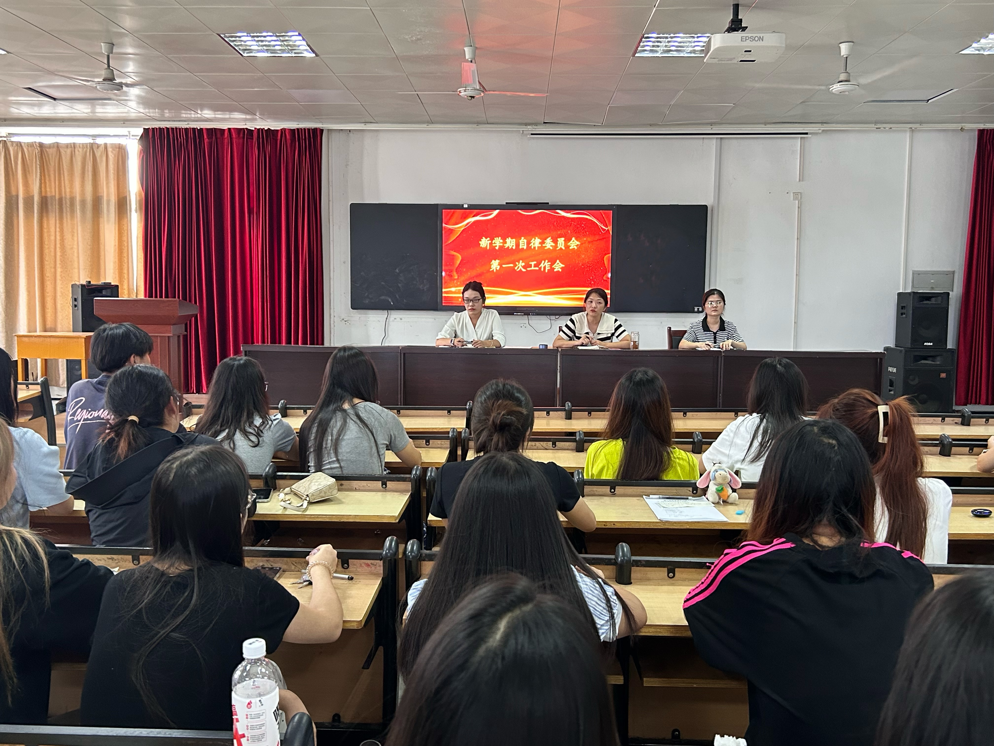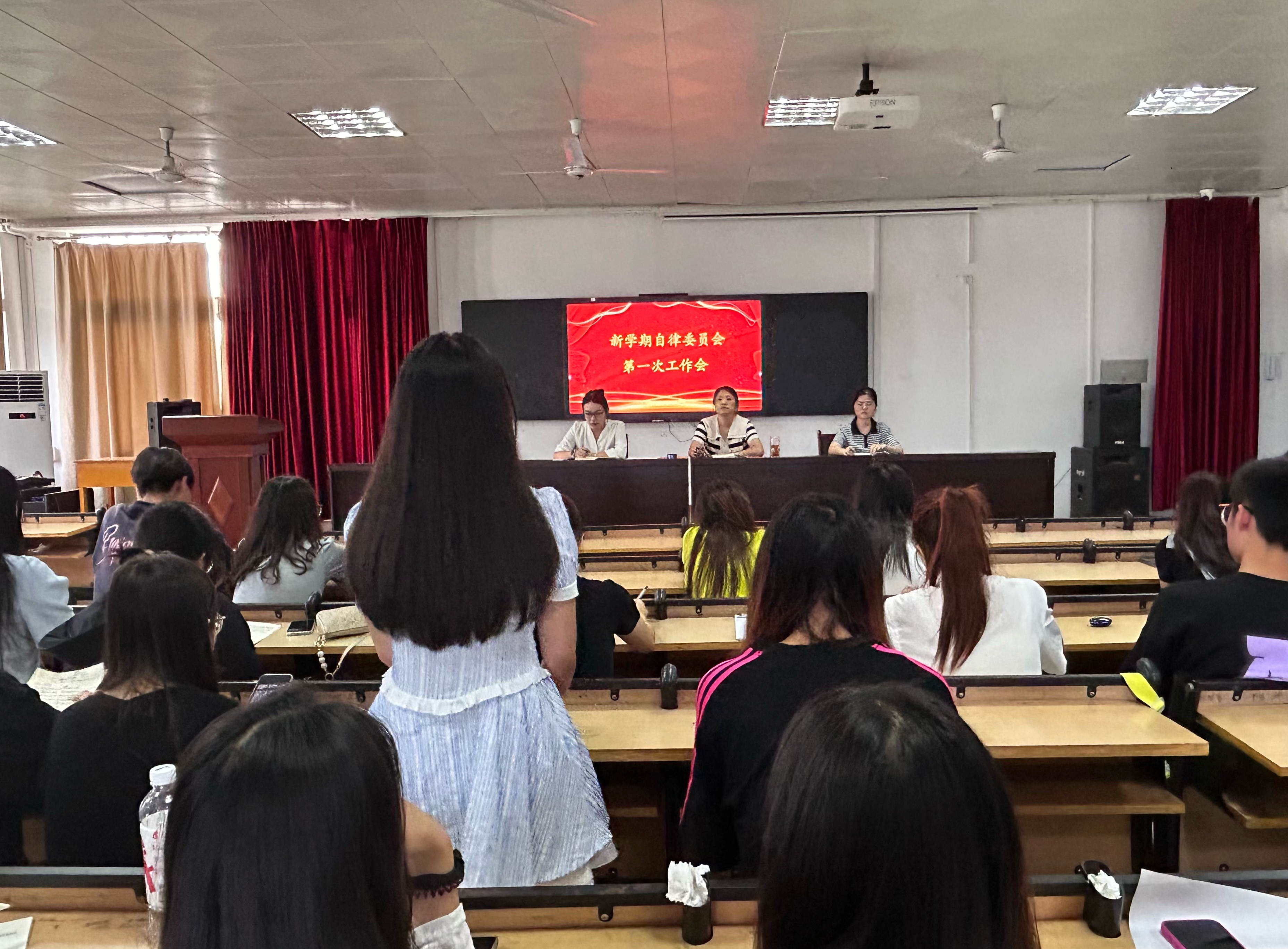 为了进一步强化学生自我管理,促进学院班风、学风健康发展,9月3日,澳门十大网投平台排行在8401教室组织召开新学期自律委员会第一次工作会。会议由学工办主任刘庆馨主持,心理专干王荣、宿管专干甘洪淋老师出席,全体自律委员会干部和各班班长参加会议。