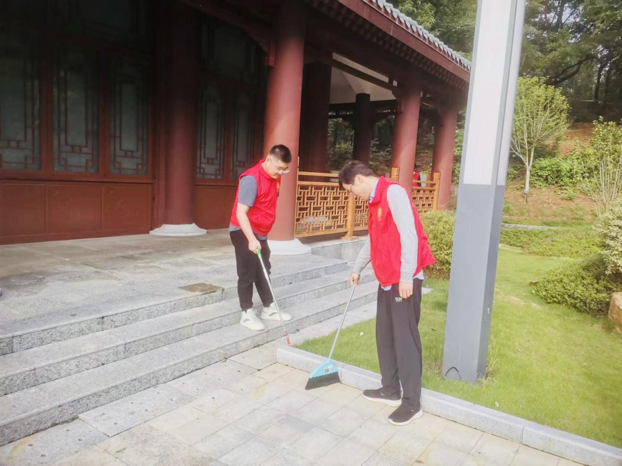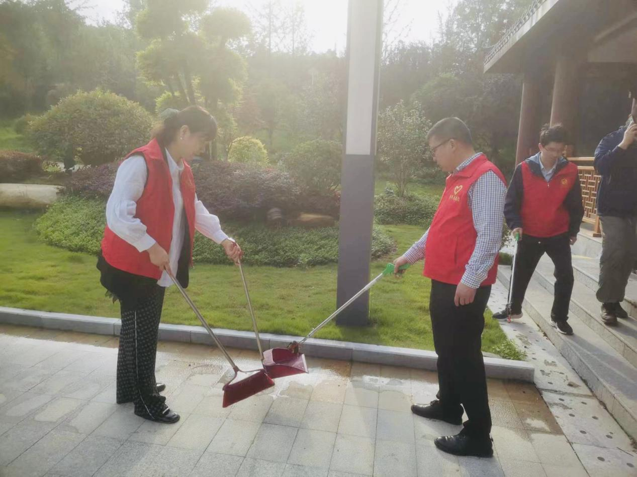 在中医药文化馆中,负责人给大家介绍了文化馆的相关情况。随后,大家一同步行来到了药用植物园,教师党员们拿起清洁工具,认真细致地打扫了馆内和植物园的卫生,维护环境的干净整洁。