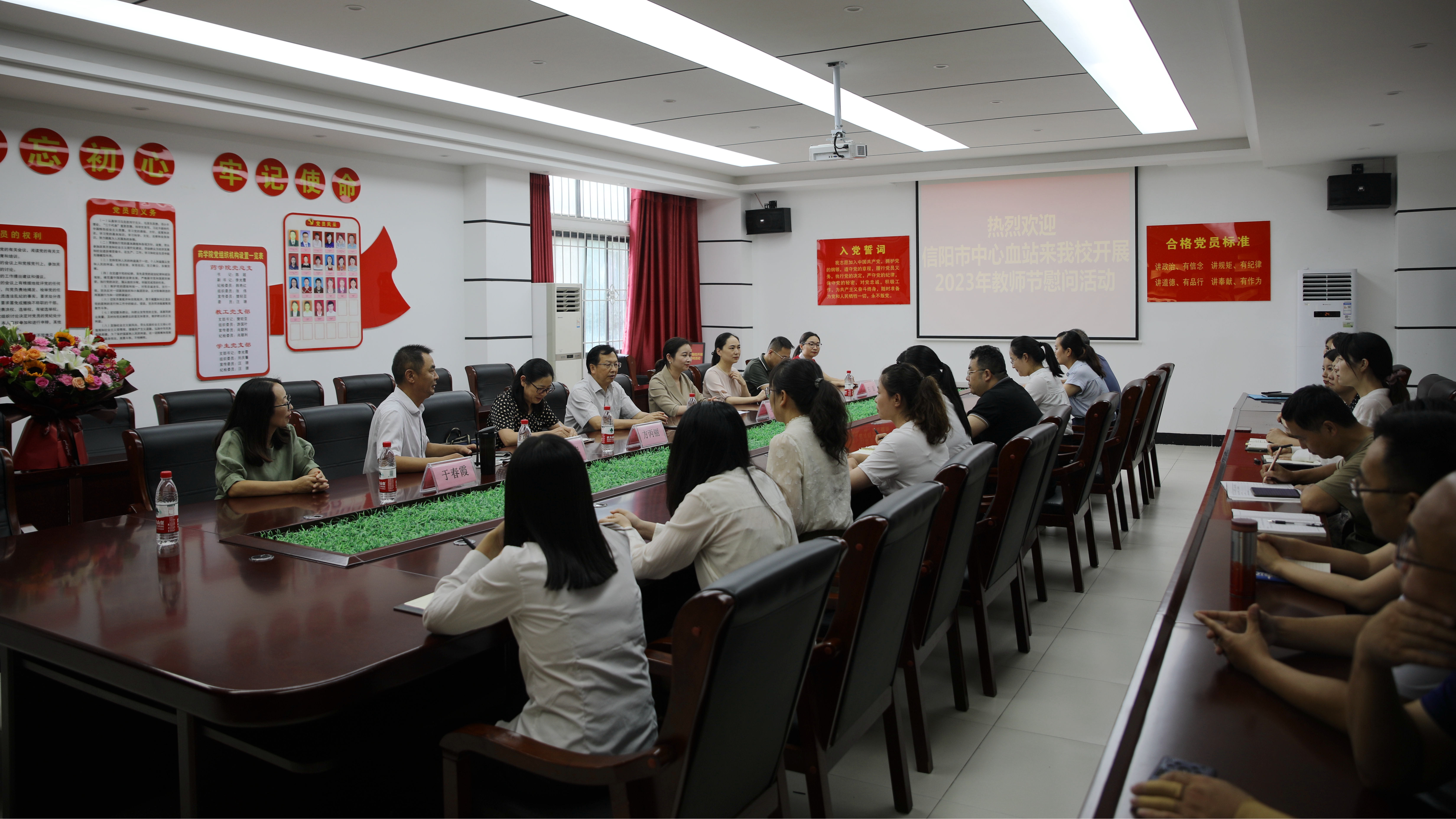 金风送爽,硕果满枝,在第39个教师节来临之际,9月5日,信阳市中心血站站长孙文艳、副站长李丽一行到我校澳门十大网投平台排行、基础医学部走访慰问一线教师,座谈共话站校合作。学校党委副书记、副校长王操志、人事处处长方丙丽出席座谈会,相关院部负责同志和教师代表参加座谈会。座谈会由澳门十大网投平台排行院长吴长忠主持。