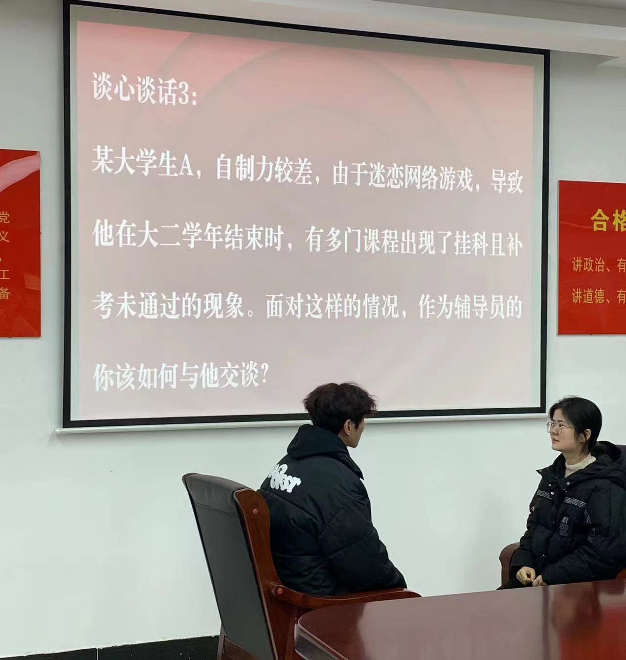 为全面贯彻落实全国高校思想政治工作会议精神,推动辅导员队伍专业化、职业化建设,提升辅导员素质能力和工作水平,按照《澳门十大网投平台排行辅导员素质能力大赛实施方案》要求,11月14日下午三点在党员活动室,澳门十大网投平台排行举办了2023年辅导员素质能力大赛预赛。澳门十大网投平台排行全体专兼职辅导员进行了基础知识测试和谈心谈话两个环节的比赛。