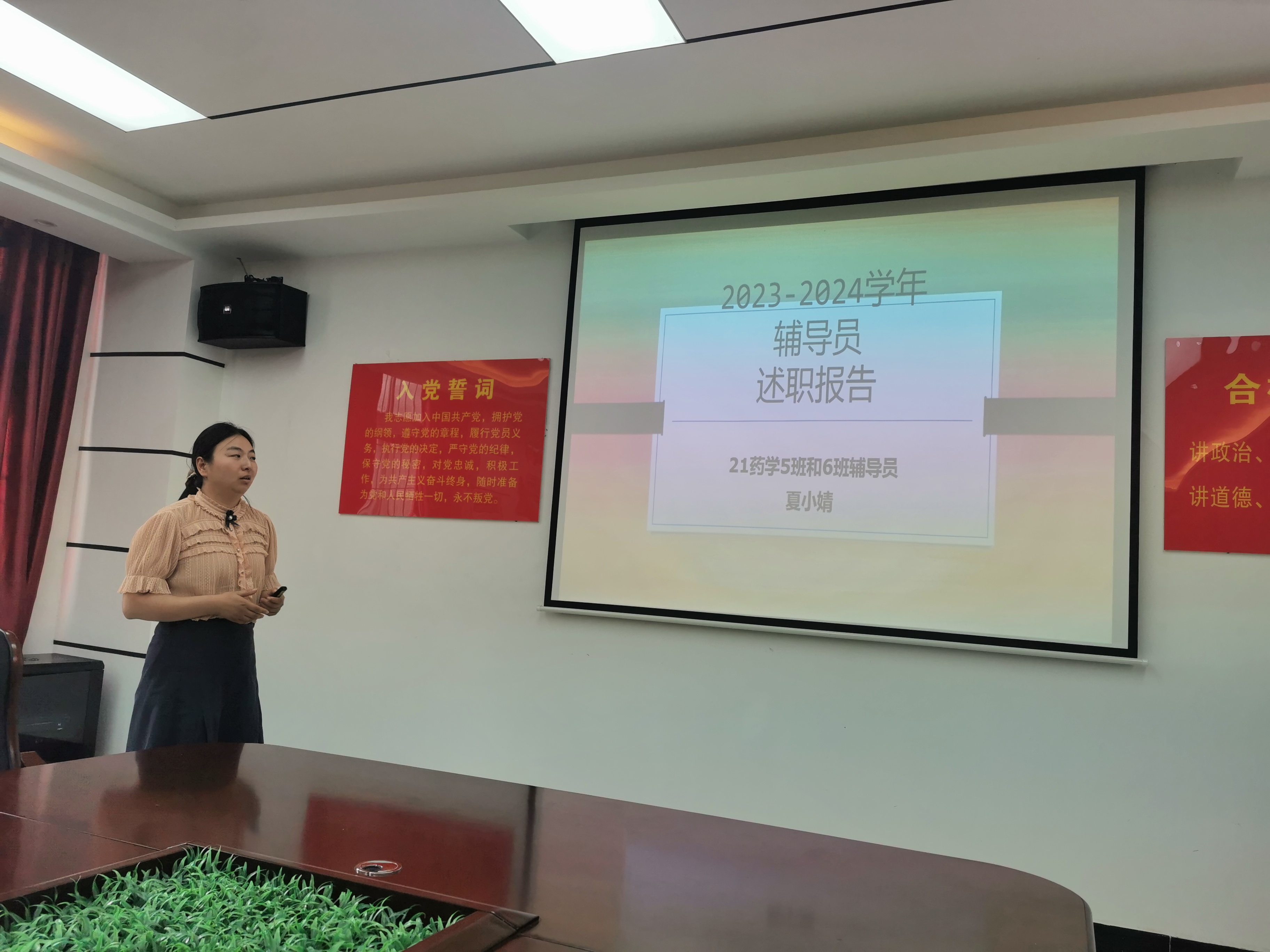 6月25日下午,澳门十大网投平台排行召开了2023-2024年度专兼职辅导员年度工作现场述职会。学院党总支书记陈才及全体学管老师参加,副院长韩艳红主持会议。