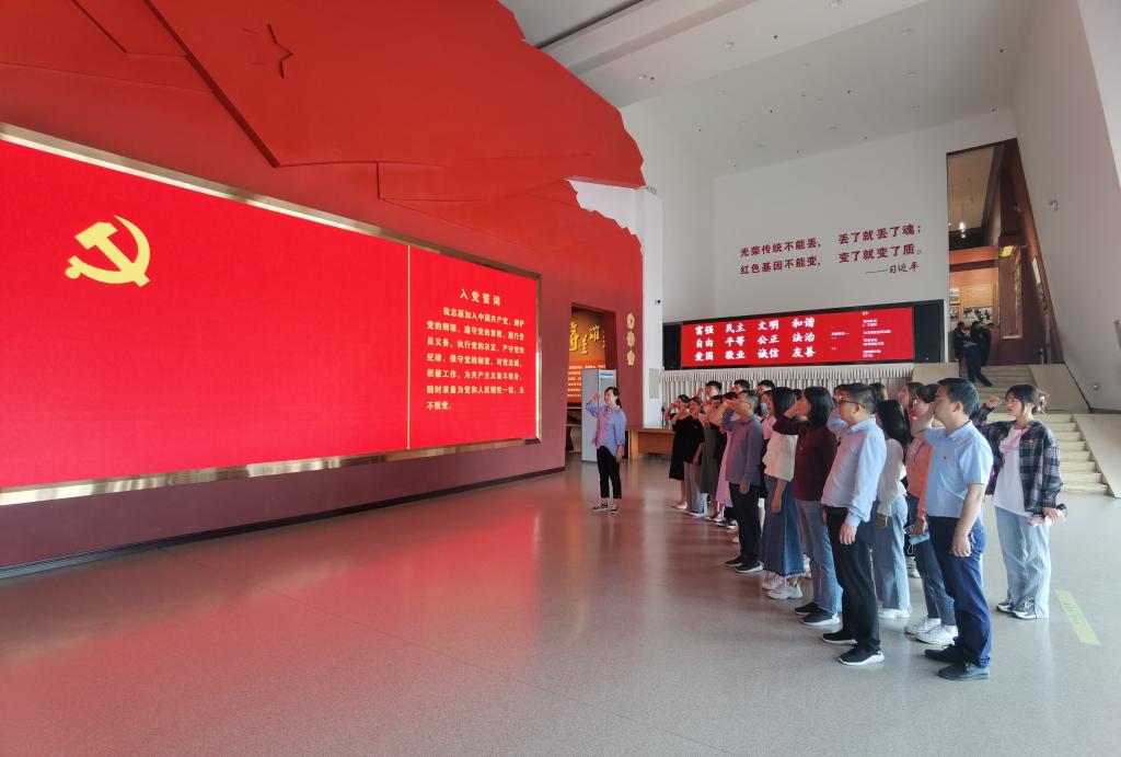 学党史、忆先烈、传基因、担重任,在庆祝中国共产党成立100周年之际,为加强学生党员对鄂豫皖革命老区历史的了解,感悟党的艰难发展历程,传承红色革命精神,5月8日上午,澳门十大网投平台排行学生支部全体党员在党总支书记陈超,副书记、学生支部书记李光霞带领下,前往鄂豫皖革命纪念馆进行参观学习。