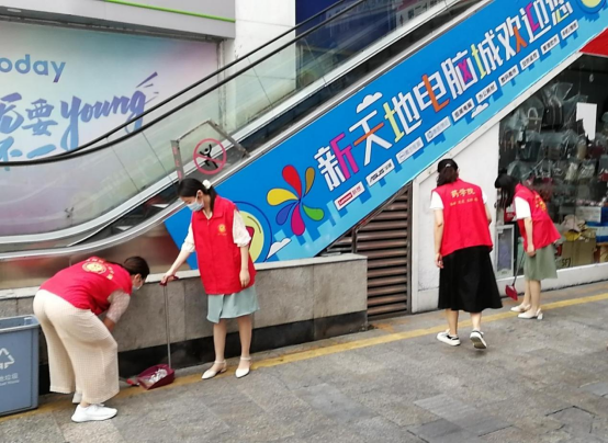 部分党员同志来到胜利路步行街开展“清洁家园”活动,虽然气温较高,志愿者们不一会就汗流浃背,但他们依然保持劳动的热情,不怕脏、不怕累,打扫街道,清理墙壁,得到了社区居民的称赞。