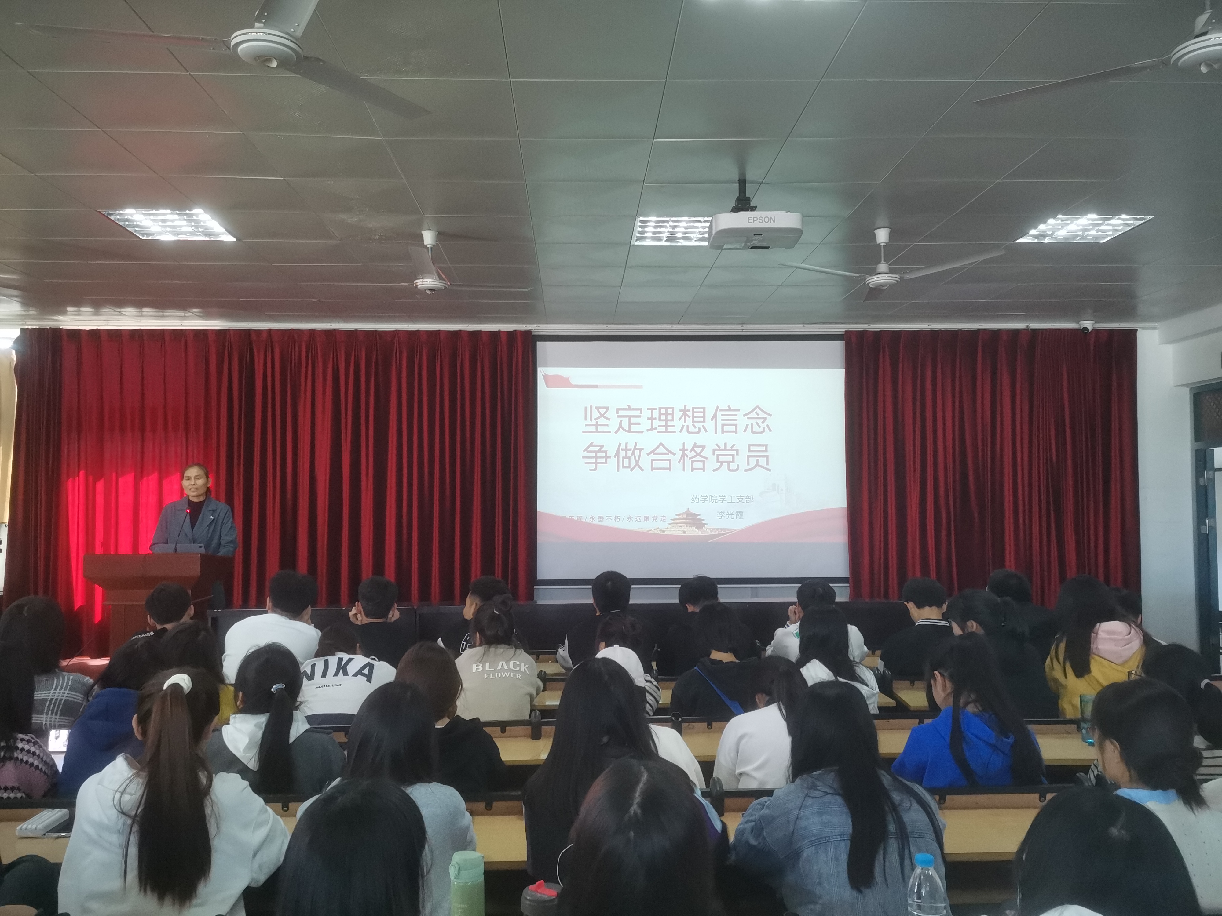 为迎接党的二十大,引导青年大学生扣好人生的第一粒扣子, 加强大学生理想信念教育,10月11日,澳门十大网投平台排行党总支副书记、学工支部书记李光霞以《坚定理想信念 争做合格党员》为全体2022级同学讲授了一堂生动深刻的专题党课。