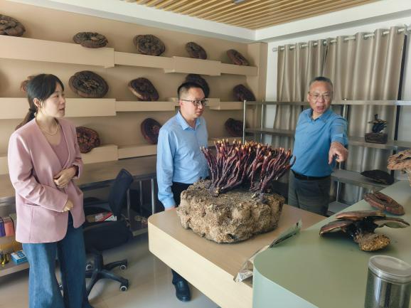 考察组首先来到河南硕沃农业科技有限公司。企业负责人详细介绍了筐式种植天麻技术,就种子挑选、温湿度调控、光照需求等环节与考察组成员开展深入探讨。在洛阳灵芝文化产业园(洛阳竹荟生物科技有限公司)负责人锁现民教授向大家介绍了不同菌类在培养过程中的特殊需求,以及如何借助现代生物技术提升菌类的品质与产量。
