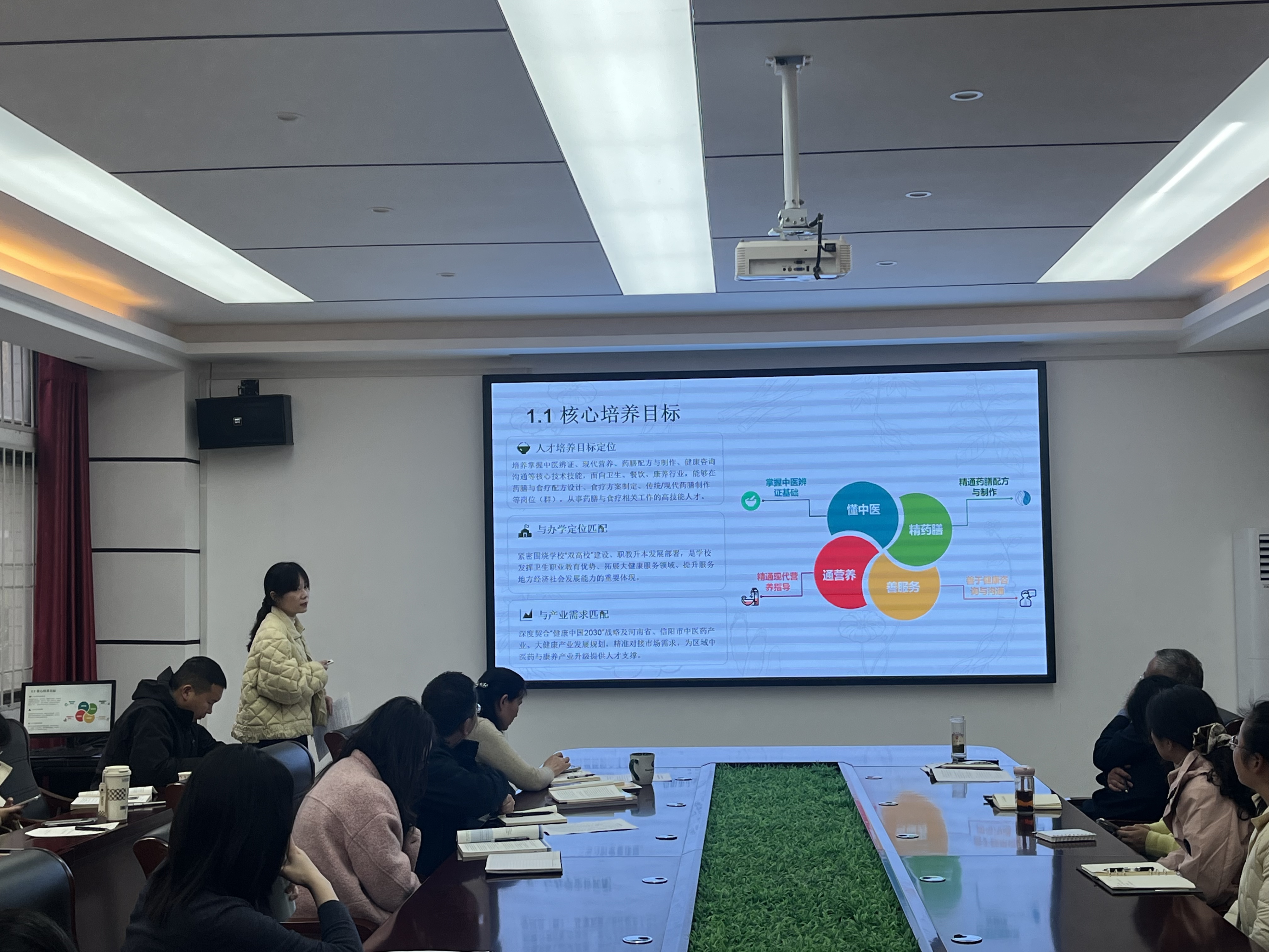 活动中,药学、中医学、药膳与食疗、中药学等4位专业负责人分别围绕专业定位与岗位对接、人才培养方案设计、师资队伍建设、实习实训与校企合作、质量监控与持续改进五个方面进行系统汇报,全面梳理专业建设现状、特色优势与发展路径。各课程负责人则聚焦“目标—内容—实施—评价”主线,深入展示课程建设成效与改革探索。汇报结束后,与会领导逐一进行点评,并就当前专业建设与课程建设中存在的问题提出针对性改进建议。