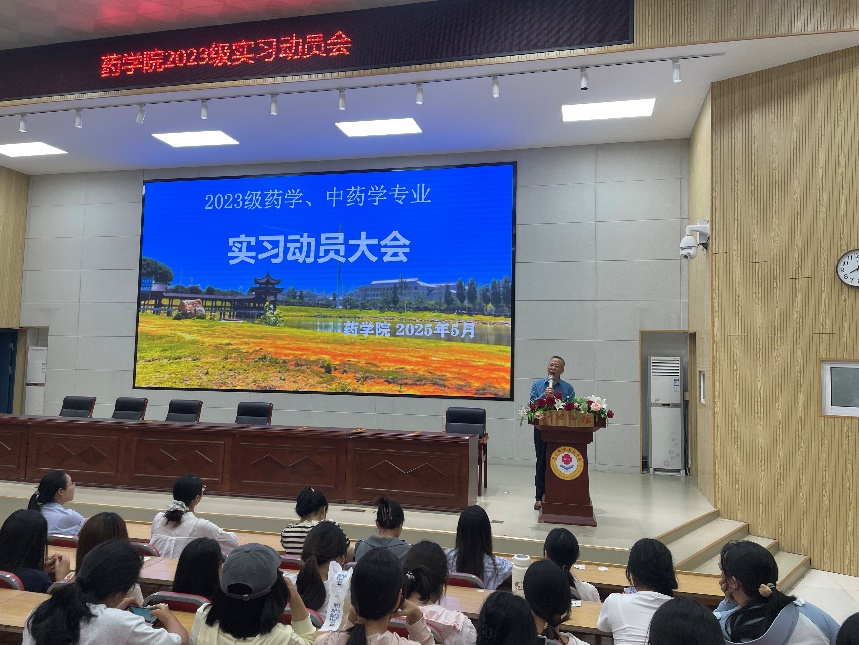为进一步做好药学、中药学学生实习工作,解决同学们在实习方面所存在的困惑,充分调动同学们的实习积极性,引导同学们做好实习前的准备,澳门十大网投平台排行于5月26日晚在3107行知讲堂召开了2023级实习动员会。澳门十大网投平台排行全体教师及23级学生参加了大会。会议由澳门十大网投平台排行副院长许卫军主持。
