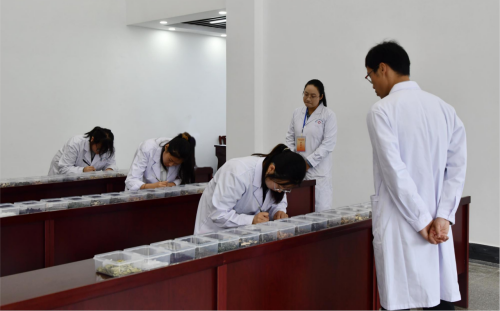 本次技能大赛设置了“中药传统技能”和“医药商品购销”两个竞赛项目,共有60名药学和中药学专业的学生入围决赛。参赛选手充分准备,表现沉着冷静、有条不紊,并全神贯注地完成每个比赛项目,充分展现了当代职业院校学生精湛技艺和良好精神风貌。评委老师全程评审,最终评选出一、二、三等奖项。